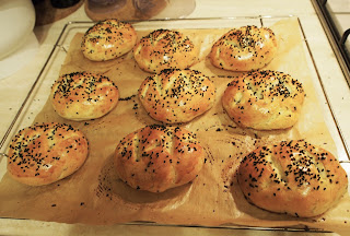 Piekarnik nagrzewamy do 190 stopni, bułki przed pieczeniem smarujemy rozmąconym jajkiem i posypujemy czarnuszką,